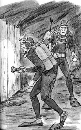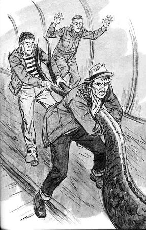 Dopo il panico iniziale e con i nervi distesi riescono a avvicinare il mostro marino ed a scoprire il suo mistero.
