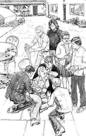 Ma l'ombra compare nuovamente, quindi i Tre Investigatori scopriranno che è Sonny Elmquist, un giovane un po strano, a uscire dal suo corpo con la meditazione per girovagare nel quartiere.